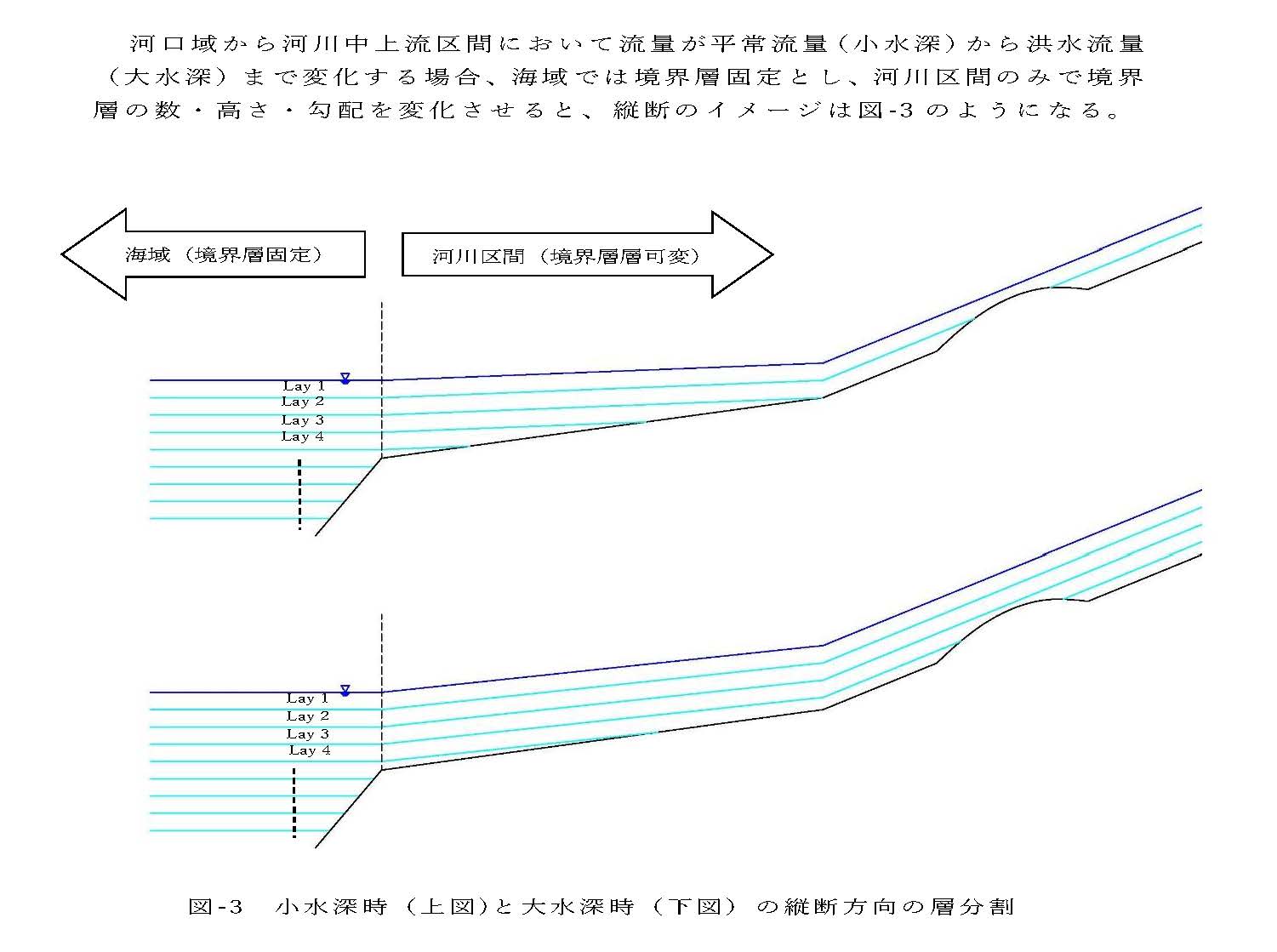 同時に境界層の数も増えたり減ったりさせることができる、河川の勾配にあわせて境界層を傾けることができる